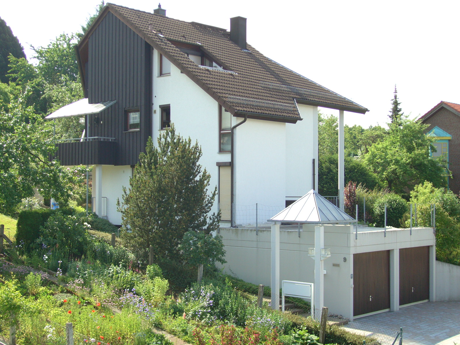 Die Inspiration zu einer Reihe von Bauten kam aus dem mediteranen Lebensgefühl, der Fortsetzung des Innenlebens vor der Haustür, vor der Terrassentür in Vorplätzen und Gartenräumen. Der Reiz liegt in der Verzahnung von Innenraum und Garten, von Verkehrsbereichen mit Schutzzonen.